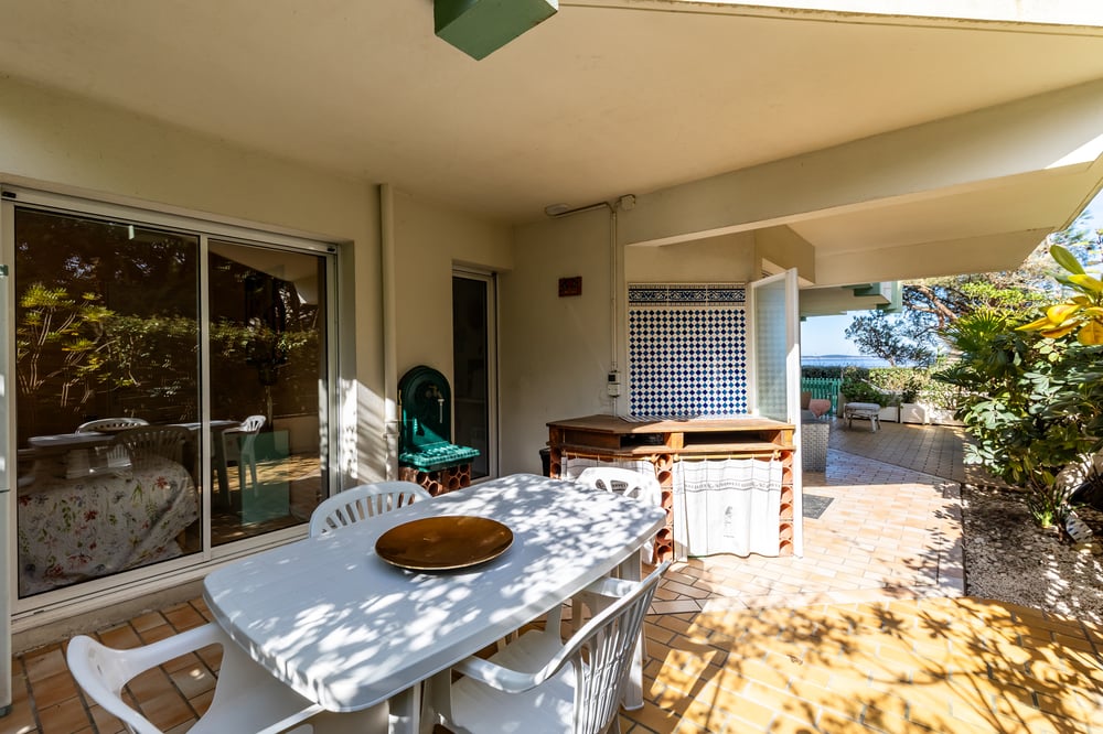 Appartement en résidence avec un accès direct à la plage Pereire. Il comprend une chambre pour 2 personnes, une salle de bain séparée, une cuisine équipée (four, micro-ondes, vaisselle, cafetière à filtre), et un salon avec TV et internet. Grande terrasse de 66 m², abritée du vent, avec portillon privé donnant directement sur la plage. Place de parking privative incluse.