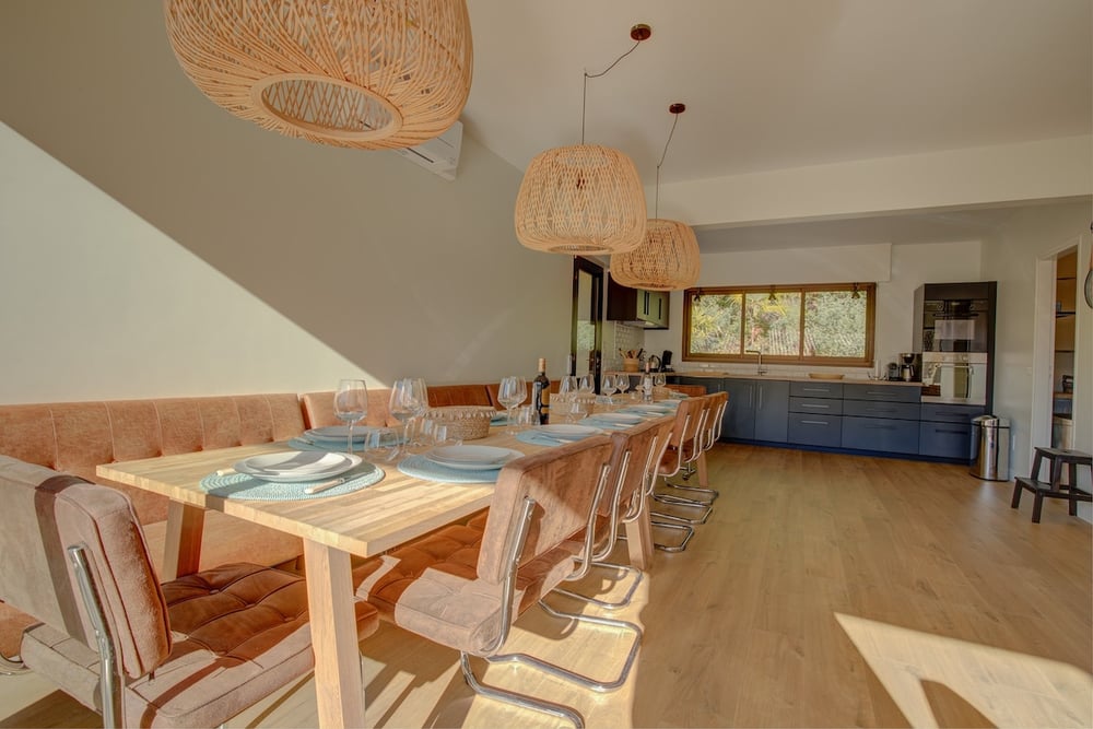 Grande Villa Familiale avec Piscine Chauffée, Terrasse Panoramique & Coin Repas Extérieur – Plage Pereire à 5 min | Bassin d’Arcachon Bienvenue dans cette villa spacieuse et chaleureuse, entièrement rénovée en 2021, située à seulement 5 minutes à pied de la plage Pereire, dans un quartier calme et arboré. Parfaite pour des vacances en famille ou entre amis, elle allie confort, espace et nature. Les points forts : Jusqu’à 14 personnes – 7 chambres, 5 salles de bain Piscine chauffée (6x2m), sécurisée par volet électrique – ouverte de mai à septembre Grande terrasse à l’étage avec vue sur la piscine et la forêt Coin repas extérieur côté forêt, avec une grande table dans un cadre arboré et paisible Proximité immédiate des plages, pistes cyclables et commerces Disposition de la villa : Rez-de-chaussée (non climatisé) : 4 chambres avec literie de qualité hôtelière, rangements et décoration soignée 3 salles de bain Une salle de jeux pour enfants (TV avec Chromecast, lecteur DVD, jeux) Pièces naturellement fraîches, ventilées, avec ventilateurs disponibles si besoin Étage (climatisation centrale réversible) : 3 chambres supplémentaires 2 salles de bain Grande pièce à vivre lumineuse : Salon avec TV et cheminée Cuisine ouverte et entièrement équipée Salle à manger avec grande table (14 personnes ou +) Accès direct à la terrasse avec vue sur la piscine et la forêt Extérieurs : Terrasse panoramique à l’étage Coin repas extérieur à l’arrière de la maison, à côté de la forêt, idéal pour déjeuner ou dîner dans un cadre reposant Transats, jeux de plage, table de ping-pong Équipements bébé : lit parapluie, chaise haute, jeux Équipements pratiques : machine à laver, sèche-linge, Wifi, parking devant la maison Dans la prestation de ménage, le linge de maison est inclus : Draps, housses de couette et taies d'oreiller Petites et grandes serviettes Tapis de salle de bain Torchon(s)